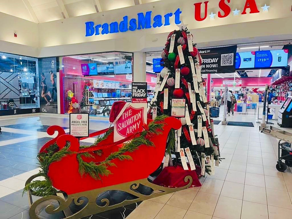 The Salvation Army of Broward County Angel Tree and handmade sleigh at the Sawgrass Mall.